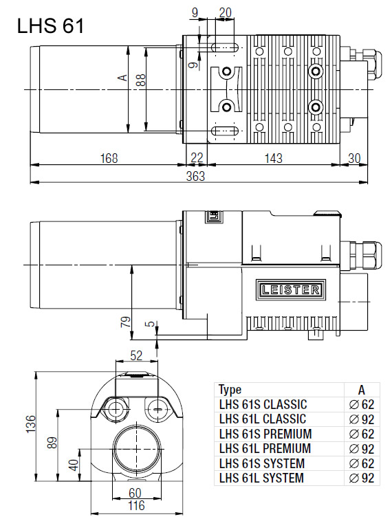 A linha PREMIUM do LHS 61 possui potenciômetro integrado no aparelho para controle de temperatura e proteção contra superaquecimento da resistência e aparelho ativos com saída de alarme.